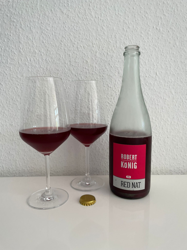 Der Red Nat von Weingut Robert König ist ein interessanter Pét-Nat (pétillant naturel), der auf natürlichem Wege prickelt und einen frischen, ungefilterten Charakter hat. Die Kombination aus roten Fruchtaromen, lebendiger Säure und Spritzigkeit macht ihn ideal für ungezwungenen Genuss.